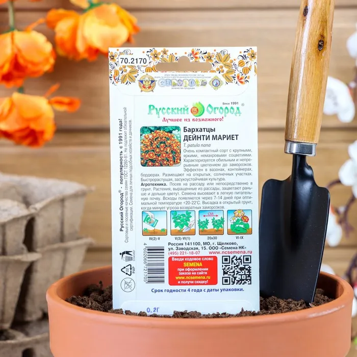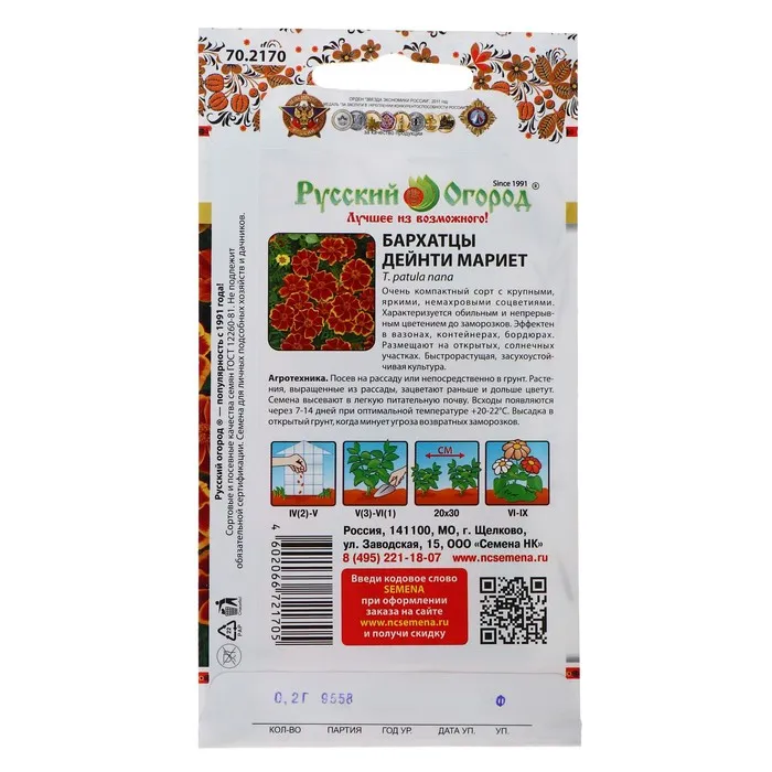 Семена цветов Бархатцы "Дейнти Мариет", серия Русский огород, О, 0,2 г — Характеристики