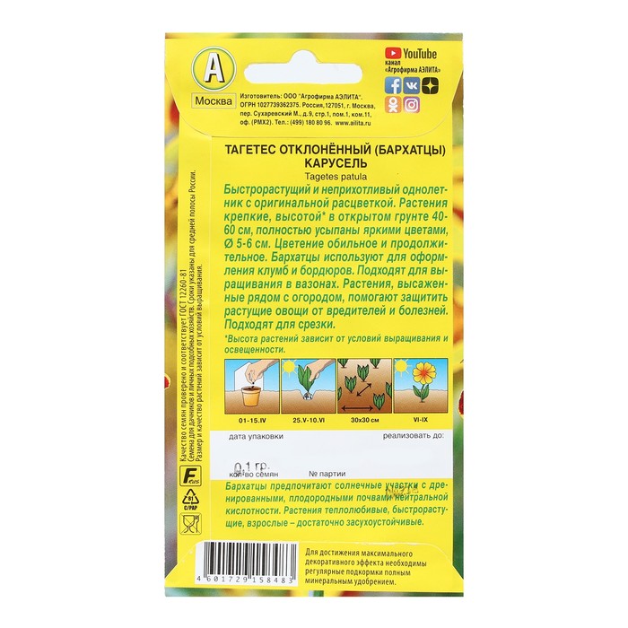 Быстрорастущий и неприхотливый однолетник с оригинальной расцветкой. Растения крепкие, высотой в открытом грунте 40-60 см, полностью усыпаны яркими цветами, 5-6 см. Цветение обильное и продолжи тельное. Бархатцы используют для оформления клумб и бордюров. Подходят для выращивания в вазонах. Растения, высаженные рядом с огородом, помогают защитить растущие овощи от вредителей и болезней. Подходят для срезки.
