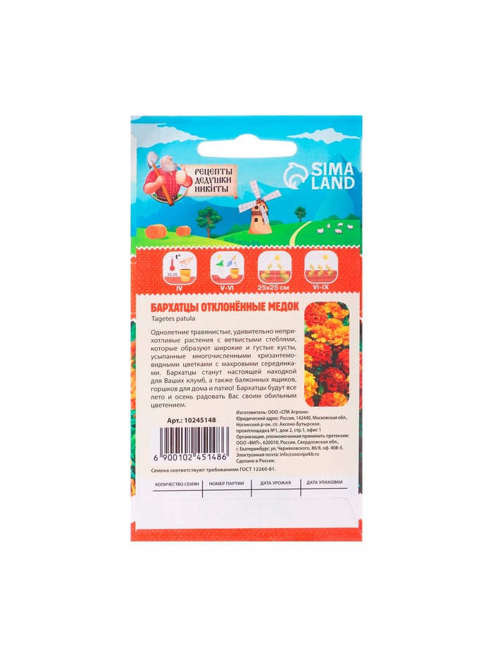 Семена Бархатцев "Медок" — это уникальная смесь, которая подарит вашему саду яркие и разнообразные цветовые акценты. Эти цветы с их насыщенными оттенками и привлекательными формами создадут атмосферу уюта и радости.Бархатцы "Медок" цветут с начала лета до заморозков, радуя глаз своим великолепием.
