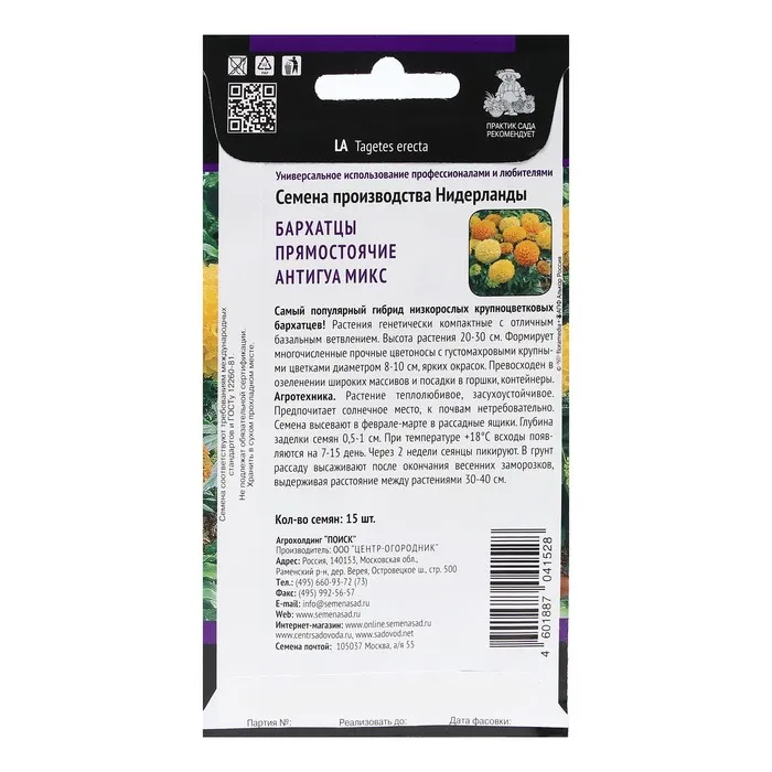 Самый популярный гибрид низкорослых крупноцветковых бархатцев. Растения генетически компактные с отличным базальным ветвлением. Высота растения 20-30 см. Формирует многочисленные прочные цветоносы с густомахровыми крупными цветками диаметром 8-10 см. Превосходен в озеленении широких массивов и посадки в горшки, контейнеры.
