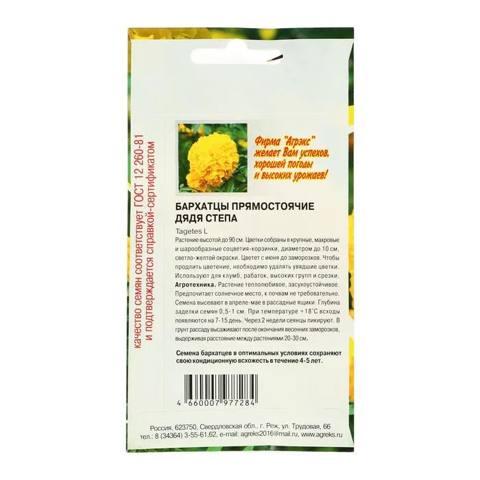 Обильное и продолжительное цветение. Растение высотой до 90 см. Цветки собраны в крупные, махровые и шарообразные соцветия-корзинки, диаметром до 10 см, светло-желтой окраски. Цветет с июня до заморозков. Чтобы продлить цветение, необходимо удалять увядшие цветки. Используют для клумб, рабаток, высоких групп и срезки.