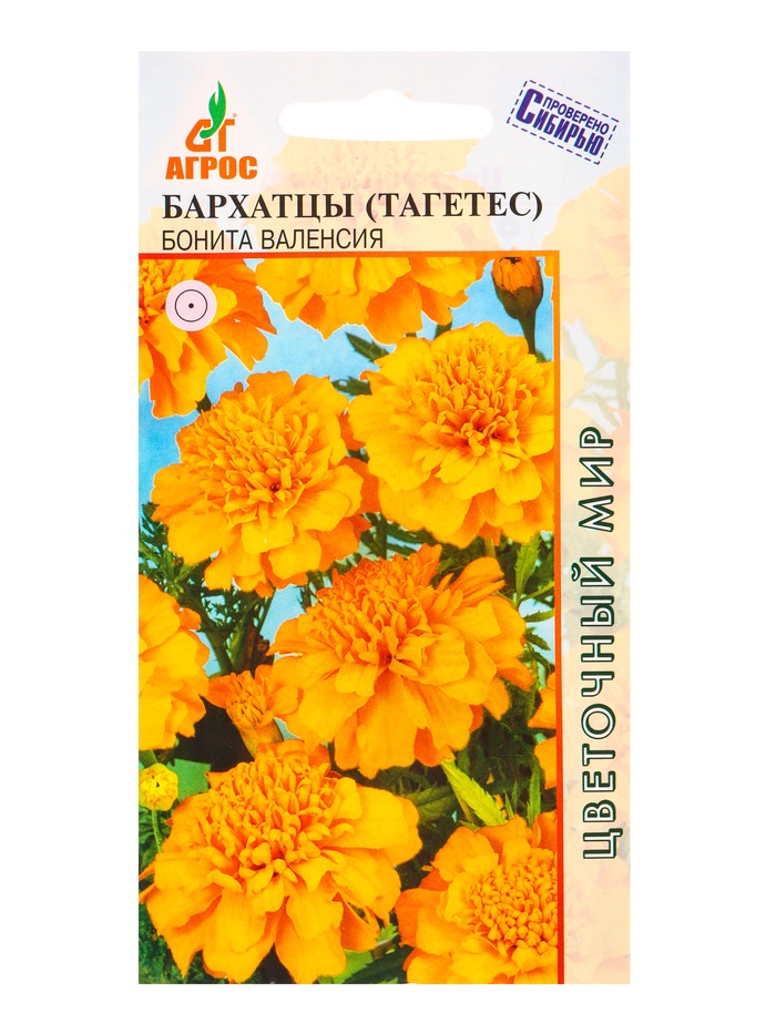 Семена цветов Бархатцы (тагетес) «Бонита Валенсия», 0.3 г, «Агрос»