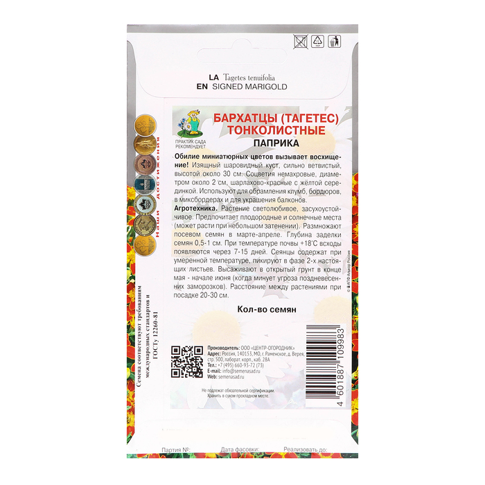 Семена цветов Бархатцы тонколистные "Паприка", 0,1гр. — Характеристики