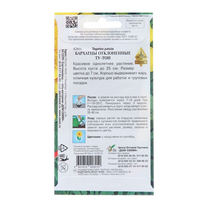 Семена цветов Бархатцы "Ту-Тон", 80 шт — Характеристики