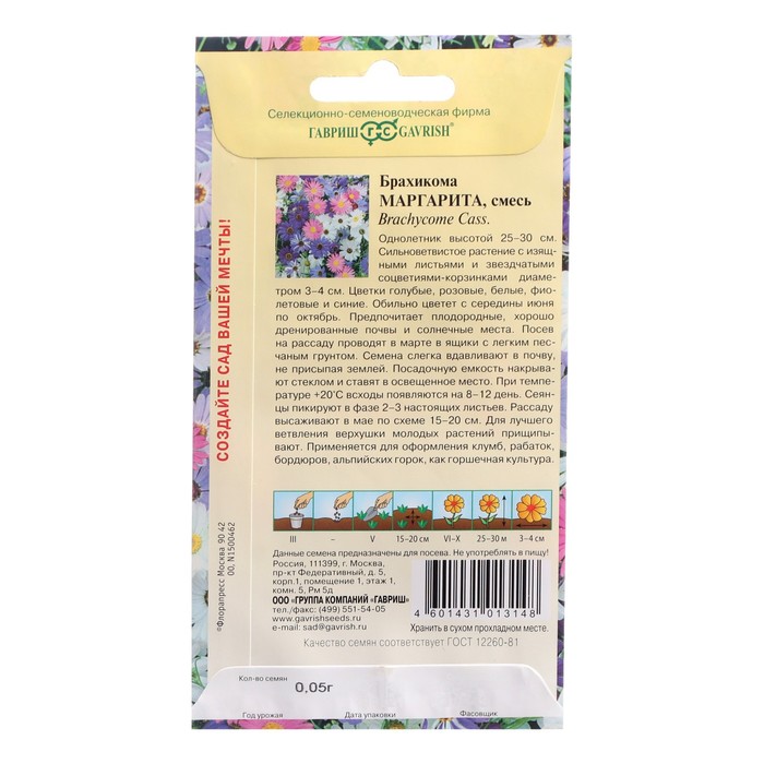Однолетник высотой 25-30 см. Сильноветвистое растение с изящными листьями и звездчатыми соцветиями-корзинками диаметром 3-4 см. Цветки голубые, розовые, белые, фиолетовые и синие. Обильно цветет с середины июня по октябрь. Предпочитает плодородные, хорошо дренированные почвы и солнечные места. Посев на рассаду проводят в марте в ящики с легким песчаным грунтом. Семена слегка вдавливают в почву, не присыпая землей. Посадочную емкость накрывают стеклом и ставят в освещенное место. При температуре +20 °C всходы появляются на 8-12 день. Сеянцы пикируют в фазе 2-3 настоящих листьев. Рассаду высаживают в мае по схеме 15-20 см. Для лучшего ветвления верхушки молодых растений прищипывают. Применяется для оформления клумб, рабаток, бордюров, альпийских горок, как горшечная культура.