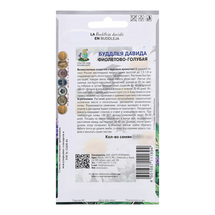 Семена цветов Буддлея "Давида Фиолетово-голубая", 0,01гр. — Характеристики