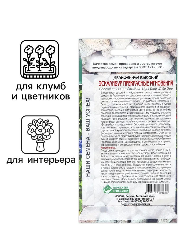 Семена цветов Дельфиниум высокий "Прекрасные Мгновения", 7 шт — Характеристики
