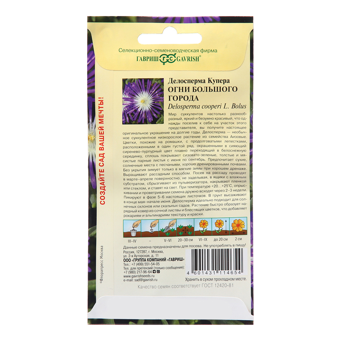 Семена цветов Делосперма «Огни большого города», 7 шт., многолетник, «Гавриш» — Характеристики