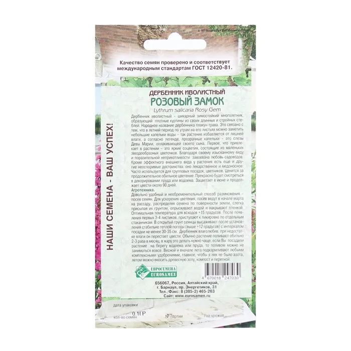 Довольно удобный и необременительный способ размножения - посев семян. Для ускорения цветения, посев ведут в начале марта на рассаду, распределяя семена по поверхности земли, слегка присыпая их грунтом, опрыскивают водой и накрывают пленкой. Оптимальная температура для всходов + 15 градусов. После появления первых 3-4 листиков, приступают к пикировке по отдельным стаканчикам. В открытый грунт сеянцы высаживают после установления стабильно теплой погоды (выше+12 градусов) с интервалом посадки не менее 30-35 см. Дербенник влаголюбив, при недостатке влаги он перестает цвести. Обычно растение поливают обильно 2-3 раза в месяц, в жару это делать нужно чаще, если Вы посадили растение на берегу водоема или пруда, то поливом можно не заниматься вовсе. Весной и вначале лета подкармливают любыми комплексными удобрениями, главное, чтобы в них не было азота, летом можно вносить древесную золу, компост и перегной.