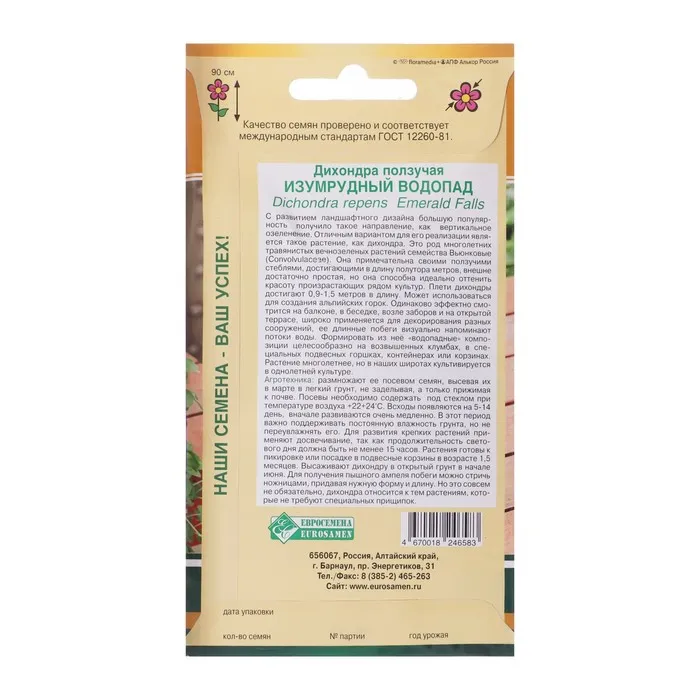 Семена цветов Дихондра ползучая "Изумрудный Водопад", драже, 3 шт — Характеристики