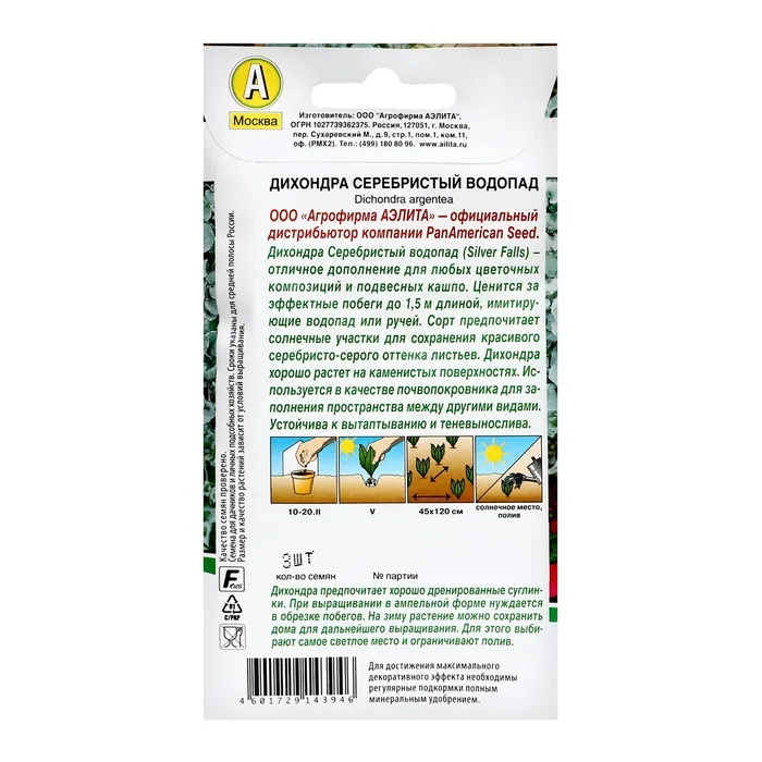 Семена цветов Дихондра "Серебристый водопад", ц/п, 3 шт — Характеристики