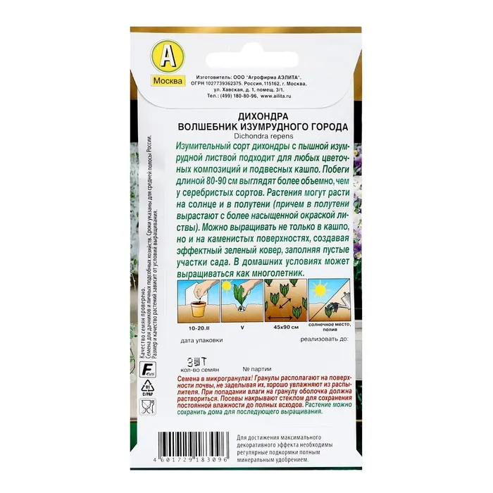 Создайте живописные цветочные композиции на вашем участке с простыми в уходе семенами дихондры. Превратите ваш сад в настоящий уголок изумрудного отражения, который будет радовать вас всё лето!