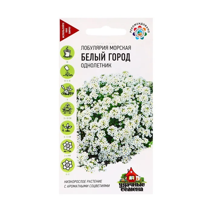 Семена Цветов Лобулярия морская "Белый город", ц/п, 0,05 г