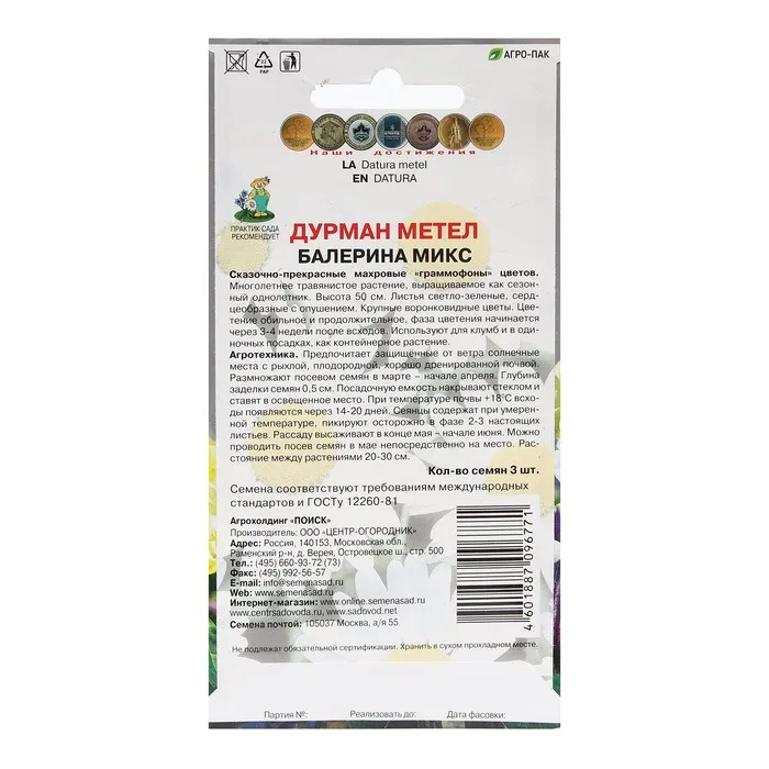 Сказочно-прекрасные махровые «граммофоны» цветов. Многолетнее травянистое растение, выращиваемое как сезонный однолетник. Высота 50 см. Листья светло-зеленые, сердцеобразные с опушением. Крупные воронковидные цветы. Цветение обильное и продолжительное, фаза цветения начинается через 3-4 недели после всходов. Используют для клумб и в одиночных посадках, как контейнерное растение.