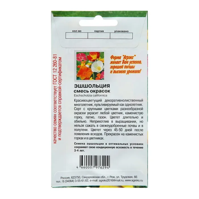 Агротехника. Растение светолюбивое, холодо- и засухоустойчивое, предпочитает легкие дренированные почвы. Посев проводят в мае на постоянное место. Глубина заделки семян 0,5-1 см. При температуре почвы +15-18°С всходы появляются на 8-10 день. Сеянцы прореживают, выдерживая расстояние между растениями 10-12 см. Пересадки не переносят.