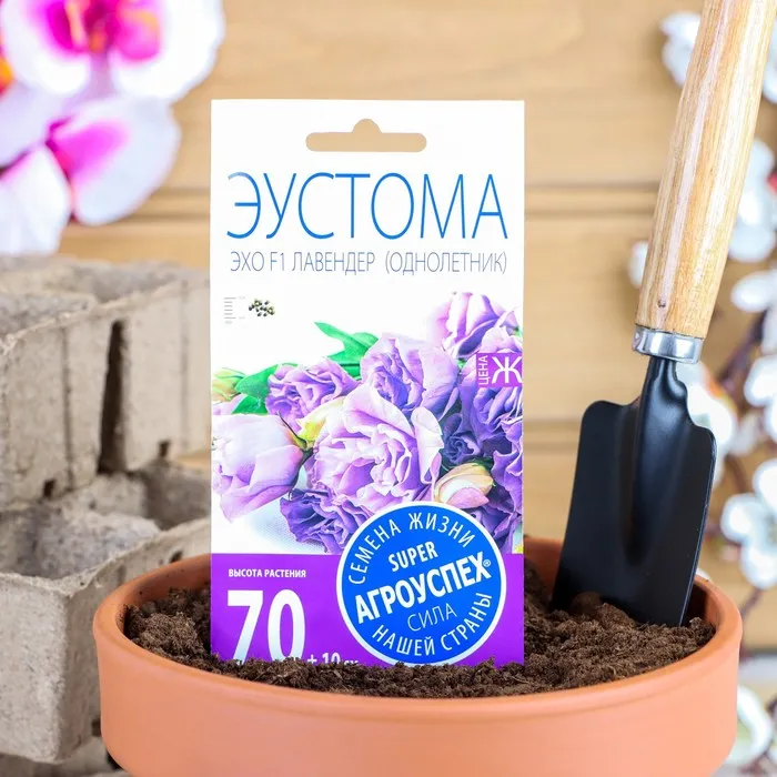 Однолетник Eustoma Grandiflorum Echo F1 Blue для самых красивых букетов. Роскошная и популярная серия с крупными цветками. Очень привлекательное растение высотой 60-80 см с полумахровыми соцветиями (7 см) темно-фиолетового цвета с сизыми, словно покрытыми воском листьями. Идеально подходит для срезки, оформления праздничных букетов и составления цветочных композиций.