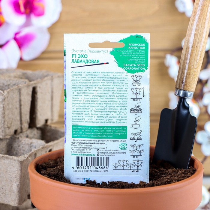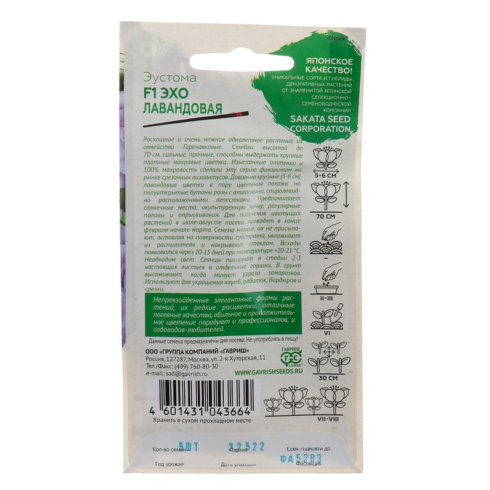 Семена цветов Эустома "Эхо" лавандовая F1, гранулы, пробирка, О, ц/п, 4 шт. — Характеристики