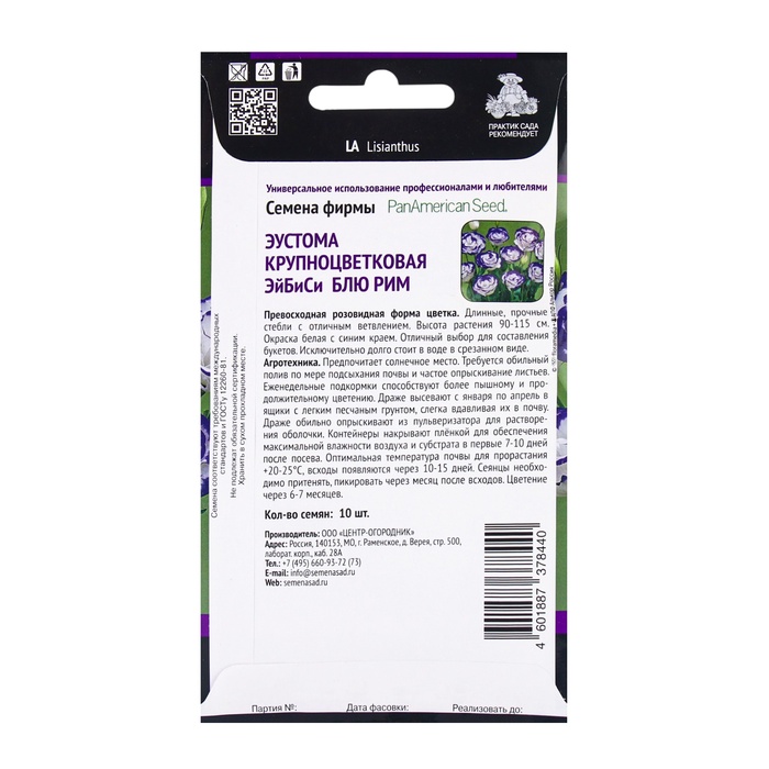 Семена цветов Эустома крупноцветковая «ЭйБиСи Блю Рим», 10 шт., «ПОИСК» — Характеристики