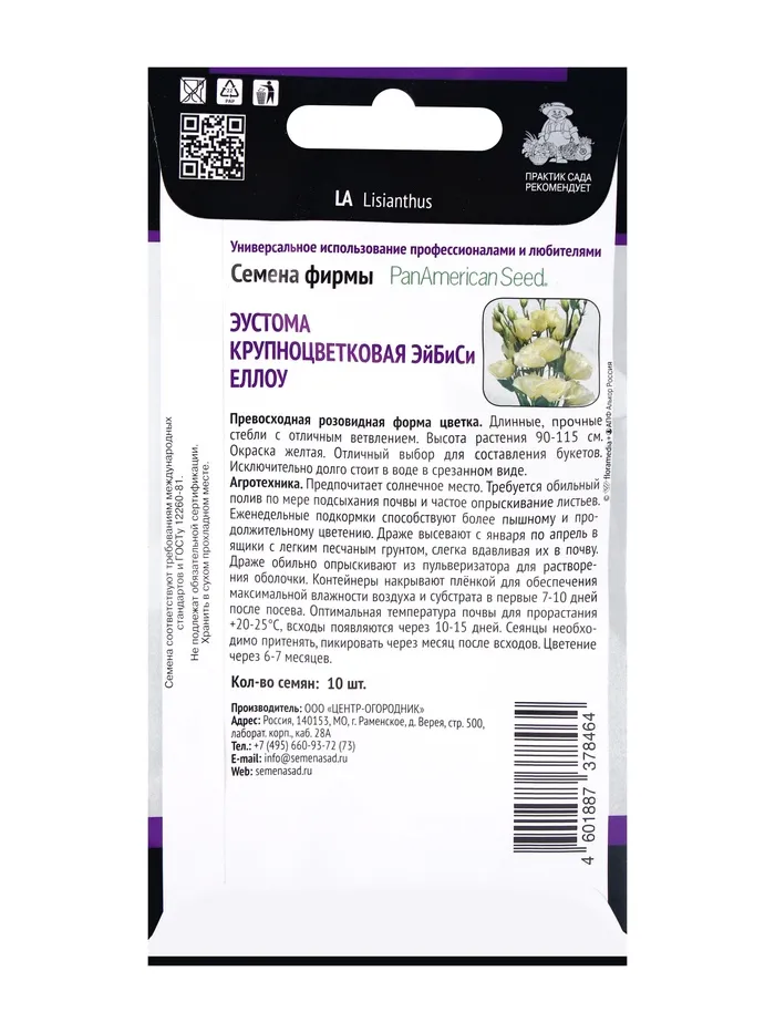 Семена цветов Эустома крупноцветковая ЭйБиСи Еллоу, 10шт — Характеристики