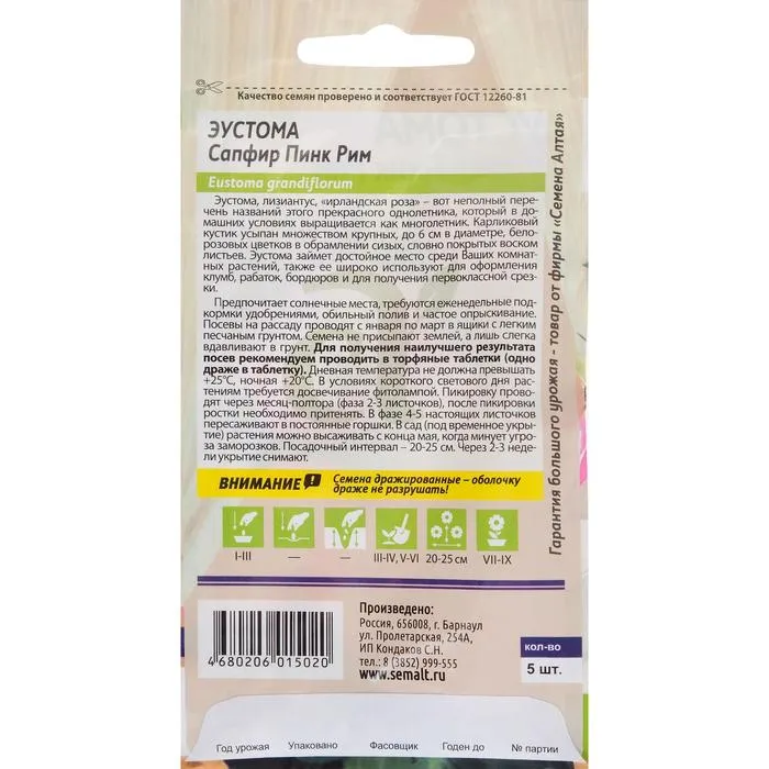 Эустома, лизиантус, «ирландская роза» - вот неполный перечень названий этого прекрасного однолетника, который в домашних условиях выращивается как многолетник. Полураспустившиеся цветки похожи на бутоны роз. Карликовый кустик усыпан множеством крупных, до 6 см в диаметре, нежно-розовых цветков в обрамлении сизых листьев. Займет достойное место среди Ваших комнатных растений, также ее широко используют для оформления клумб, рабаток, бордюров и для получения первоклассной срезки. Предпочитает солнечные места, требуются еженедельные подкормки удобрениями, обильный полив и частое опрыскивание.