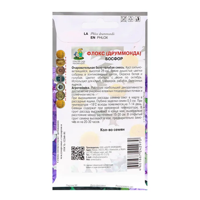 Семена цветов Флокс "Босфор", 0,1гр. — Характеристики