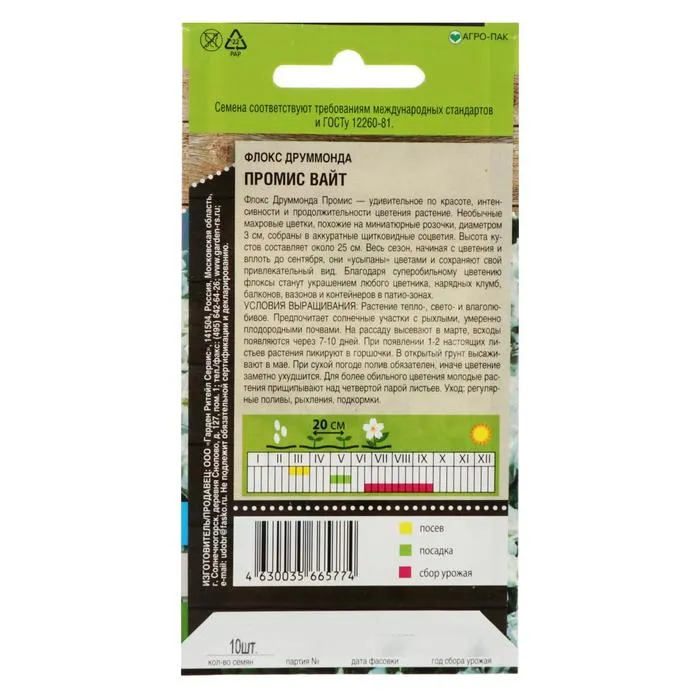Флокс Друммонда Промис удивительное по красоте, интен сивности и продолжительности цветения растение. Необычные махровые цветки, похожие на миниатюрные розочки, диаметром 3 см, собраны в аккуратные щитковидные соцветия. Высота ку- стов составляет около 25 см. Весь сезон, начиная с цветения и вплоть до сентября, они усыпаны цветами и сохраняют свой привлекательный вид. Благодаря суперобильному цветению флоксы станут украшением любого цветника, нарядных клумб, балконов, вазонов и контейнеров в патио-зонах.