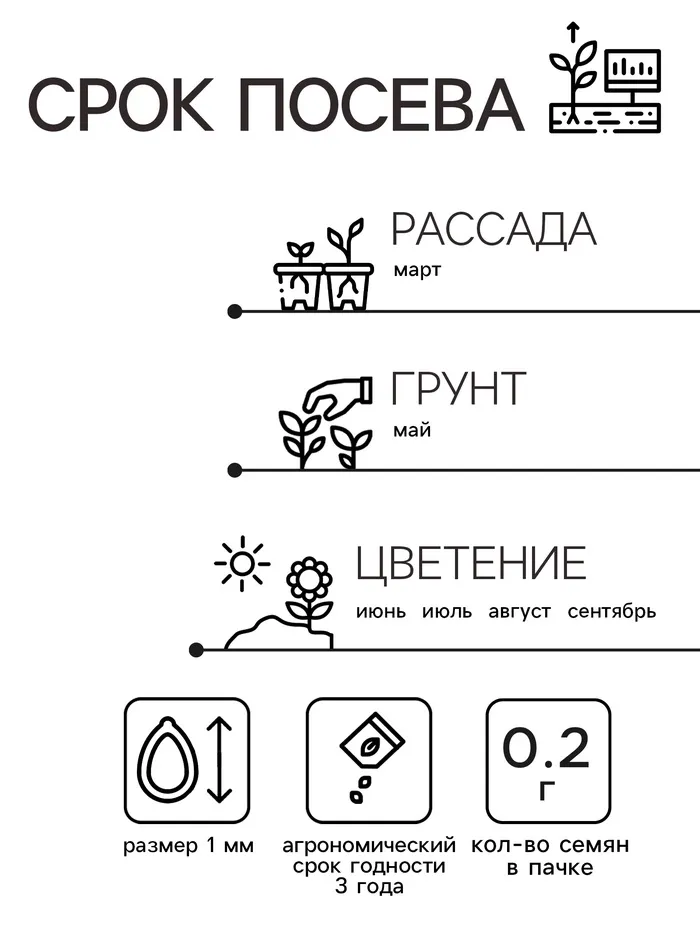 Как сажать. Семена сеют с середины до конца марта на рассаду или в мае в открытый грунт. Всходы появляются через 8–15 дней. Рассаду высаживают в цветники в конце мая по схеме 20 × 30 см.