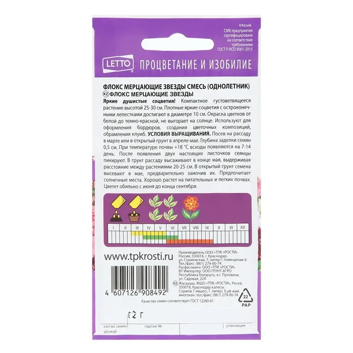 Семена цветов Флокс Мерцающие звезды, смесь, О, 0,2г — Характеристики