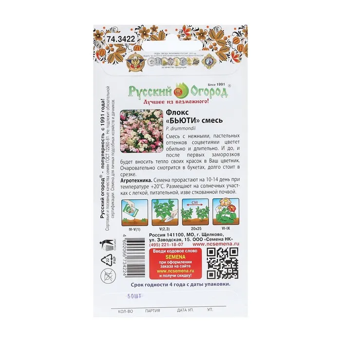 Семена цветов Флокс однолетний "Бьюти", специальная смесь, 50 шт — Характеристики