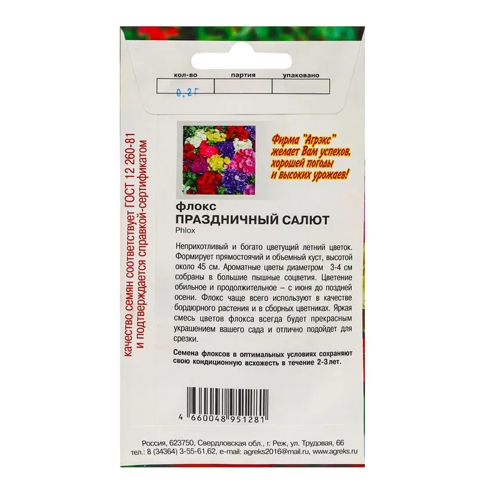 Семена цветов Флокс «Праздничный салют», 0.2 г — Характеристики