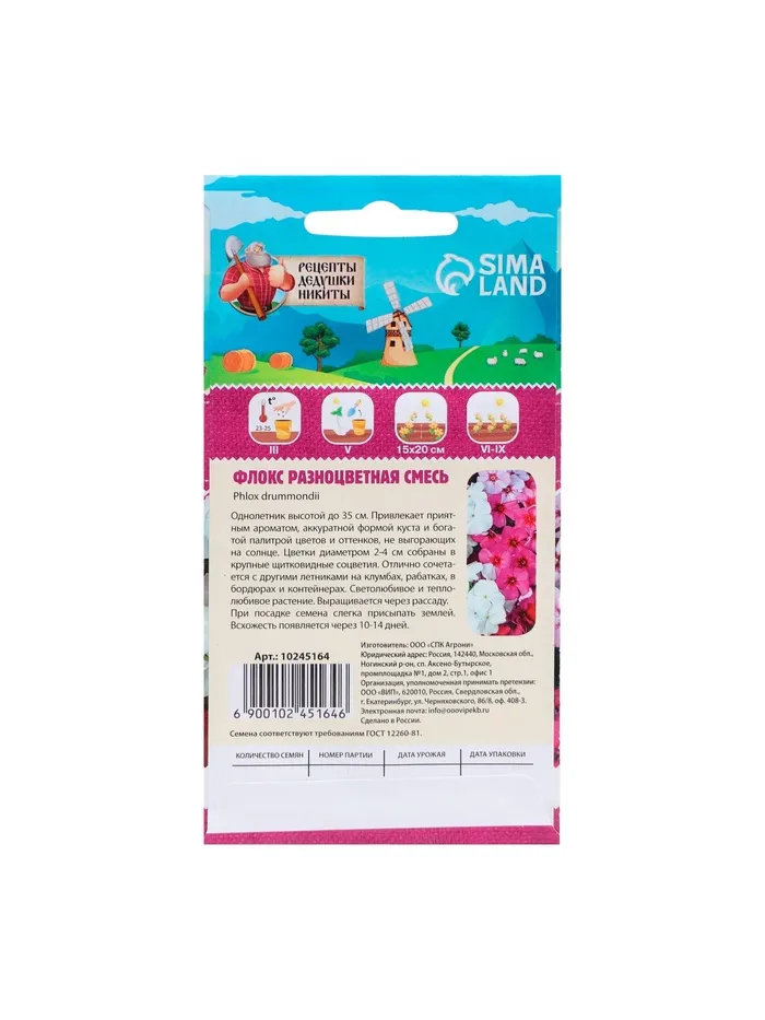 Семена цветов Флокс "Разноцветная смесь", 0,1 г — Характеристики