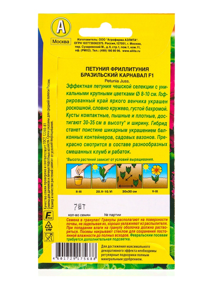 Семена цветов Фриллитуния Бразильский карнавал F1 бахромчатая (драже в пробирке), Ц/П,7 шт. 1094590 — Характеристики