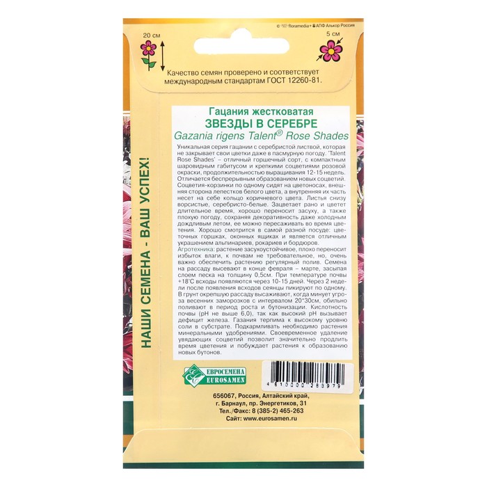 Семена цветов гацания жестковатая «Звезды в серебре», 5 шт. — Характеристики
