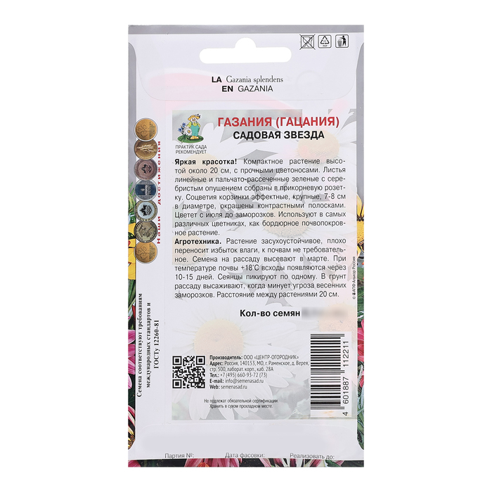 Семена цветов Газания «Садовая звезда», для балкона, веранды, цветника, однолетник, низкорослая0.1 г — Характеристики