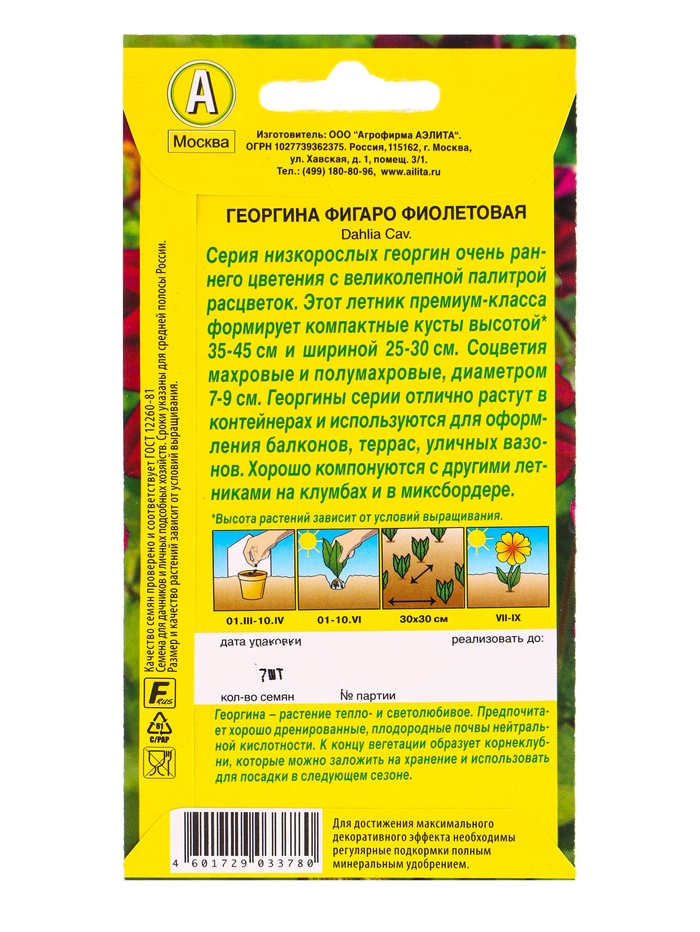 Семена цветов Георгина Фигаро махровая фиолетовая , Ц/П,7 шт. — Характеристики