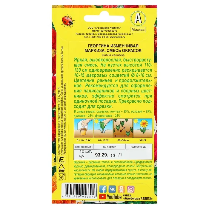 Семена цветов Георгина махровая "Маркиза", смесь окрасок, О, 10 шт — Характеристики