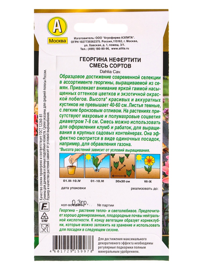 Семена цветов Георгина Нефертити, смесь сортов Золотая серия, Ц/П,0,3 г — Характеристики