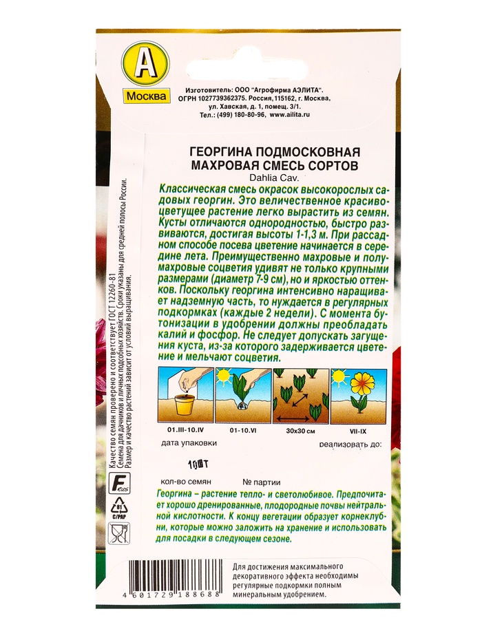 Семена цветов Георгина Подмосковная махровая, смесь сортов Золотая серия, Ц/П,10 шт. — Характеристики