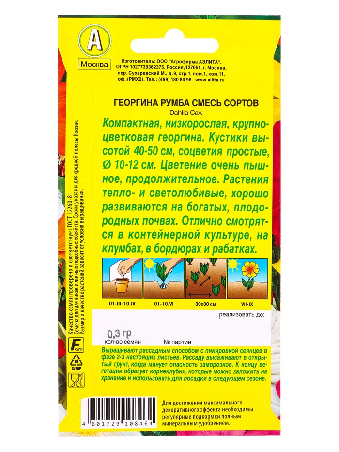Семена цветов Георгина Румба, смесь сортов , Ц/П,0,3 г — Характеристики