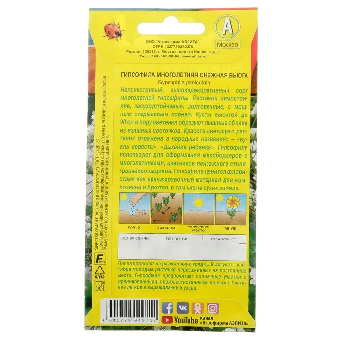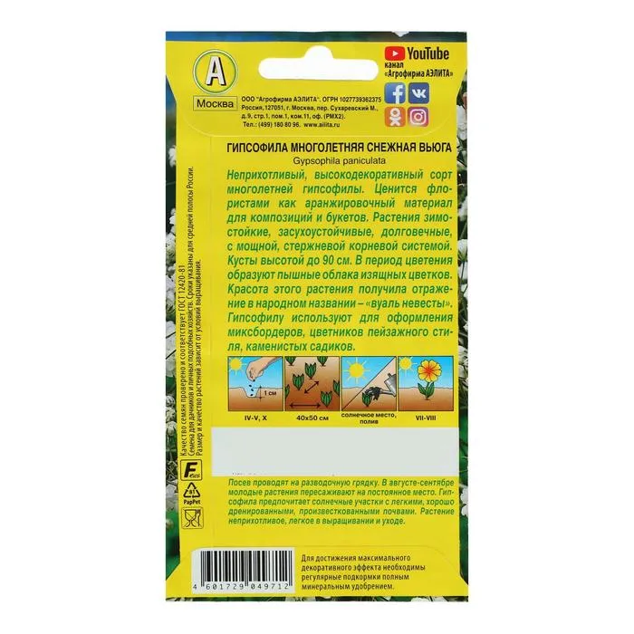 Семена цветов Гипсофила "Снежная вьюга", 0,05 г — Характеристики