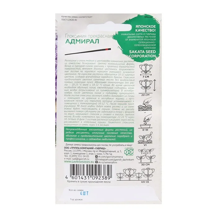 Роскошное и очень модное среди цветоводов комнатное растение из семейства Геснериевые. Цветки колокольчатой формы, белые в синюю крапинку, с приятной бархатистой поверхностью венчают длинные цветоносы. Широкоовальные листья на коротких черешках украшают основание цветоноса. На взрослом растении образуется 10-15 крупных цветков, создавая впечатление нарядного букета. Глоксиния предпочитает светлые, солнечные места без воздействия прямых солнечных лучей. Идеальная температура для роста — 20-25°С днем и 18–22°С ночью. Во время цветения необходим обильный полив, еженедельные подкормки, влажный воздух (опрыскивание из пульверизатора). В октябре-ноябре, после цветения, полив и подкормку прекращают. Когда листья глоксинии засохнут, клубни вынимают из почвы и помещают на хранение в неглубокие ящички с чуть влажным песком или перлитом, которые устанавливают в помещении с температурой 10-12°С. После периода покоя (примерно 90 дней) клубни дадут новые ростки и их снова можно будет пересаживать в горшок. Семена на рассаду высевают поверх субстрата (не заделывая в почву) с февраля по март, накрывают стеклом и ставят в теплое, светлое место. Всходы появляются при температуре 22-24°С, через 10-14 дней. В фазе 3-х листьев растения пикируют, через месяц рассаживают в отдельные горшки. Зацветает глоксиния, выращенная из семян через 5-6 месяцев.