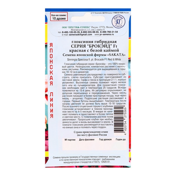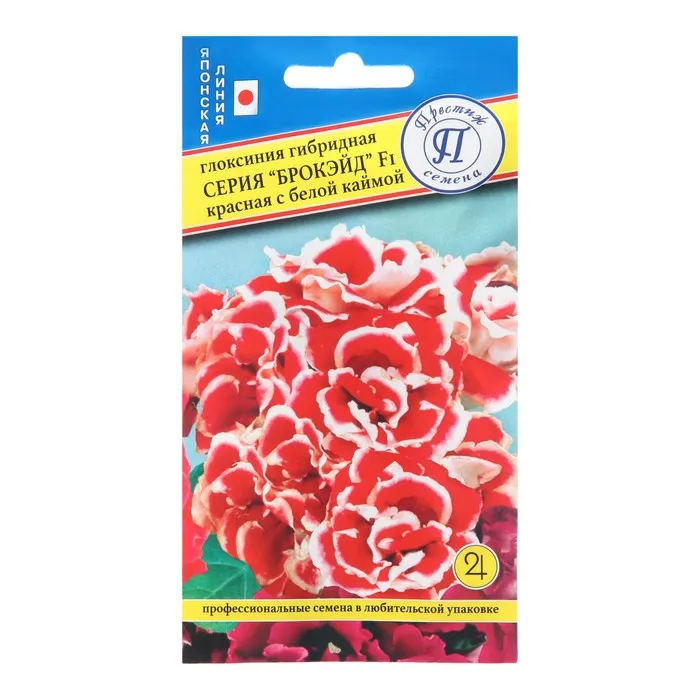 Профессиональные семена цветов Глоксиния гибридная махровая БРОКЭЙД Красная с каймой.F1