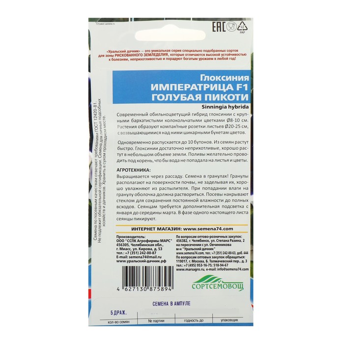 Выращивается через рассаду. Семена в гранулах! Гранулы располагают на поверхности почвы, не заделывая их, хорошо увлажняют из распылителя. При попадании влаги на гранулу оболочка должна раствориться. Посевы накрывают стеклом для сохранения постоянной влажности до полных всходов. Сеянцам требуется дополнительная подсветка с января до середины марта. В фазе одного настоящего листа сеянцы пикируют.
