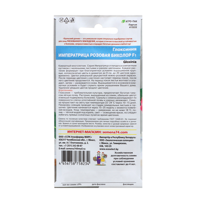 Семена Цветов Глоксиния "Императрица" розовая биколор ,5 шт , — Характеристики