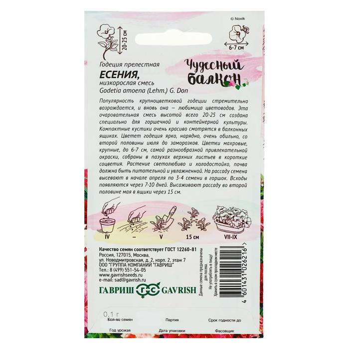 Популярность крупноцветковой годеции стремительно возрождается, и вновь она - любимица цветоводов. Эта очаровательная смесь высотой всего 20-25 см создана специально для горшечной и контейнерной культуры. Компактные кустики очень красиво смотрятся в балконных ящиках. Цветет годеция ярко, нарядно, очень обильно со второй половины июля до заморозков. Цветки махровые, крупные, до 6-7 см, самой разнообразной привлекательной окраски, собраны в пазухах верхних листьев в короткие соцветия. Растение светолюбива и холодостойка, почва должна быть питательной и увлажненной. На рассаду семена высевают в начале апреля по 3-4 семени в горшок. Всходы появляются через 7-10 дней. Высаживают рассаду во второй половине мая в ящики через 15 см.