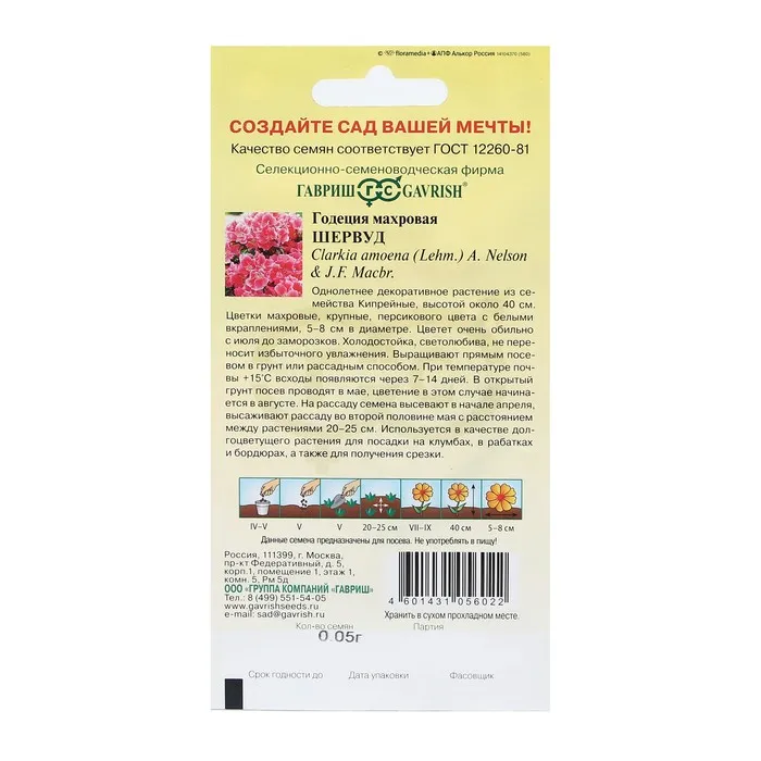 Однолетнее декоративное растение из семейства Кипрейные, высотой около 40 см. Цветки махровые, крупные, персикового цвета с белыми вкраплениями, 5-8 см в диаметре. Цветет очень обильно с июля до заморозков. Холодостойка, светолюбива, не переносит избыточного увлажнения. Выращивают прямым посевом в грунт или рассадным способом. При температуре почвы 15С всходы появляются через 7-14 дней. В открытый грунт посев проводят в мае, цветение в этом случае начинается в августе. На рассаду семена высевают в начале апреля, высаживают рассаду во второй половине мая с расстоянием между растениями 20-25 см. Используется в качестве долго цветущего растения для посадки на клумбах, в рабатках и бордюрах, а также для получения срезки.