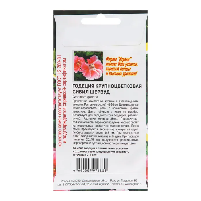Семена цветов Годеция "Сибил Шервуд", 0,2 г — Характеристики