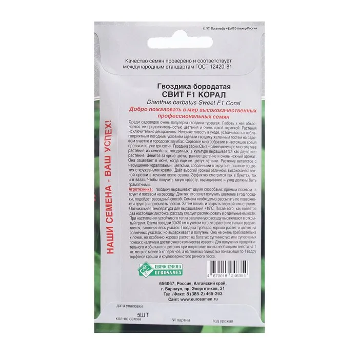 Среди садоводов очень популярна гвоздика турецкая. Любовь к ней объясняется ее продолжительностью цветения и очень яркой окраской. Растения исключительно декоративны. Неприхотливость в уходе, устойчивость к неблагоприятным погодным условиям сделали гвоздику желанным гостем на садовом участке и городских клумбах. Сортовое многообразие в настоящее время превысило уже три сотни. Гвоздика серии Свит - раннецветущее многолетнее растение из семейства гвоздичных, в культуре выращивается как двулетнее растение. Ценится за яркие цвета, раннее цветение и очень нежный аромат. Она зацветает в июне, когда еще не цветут летники. Растение ветвистое с насыщенно-коралловыми цветками, собранными в округлые, пышные соцветия с кружевными краями. Даёт высокий урожай отличной, высококачественной срезки в течение всего сезона. Эффектно смотрится как в букетах, так и в вазах. Чтобы получить такую красоту, выращивание и уход должны быть грамотными.