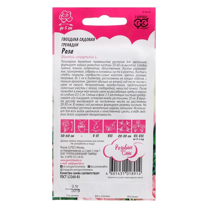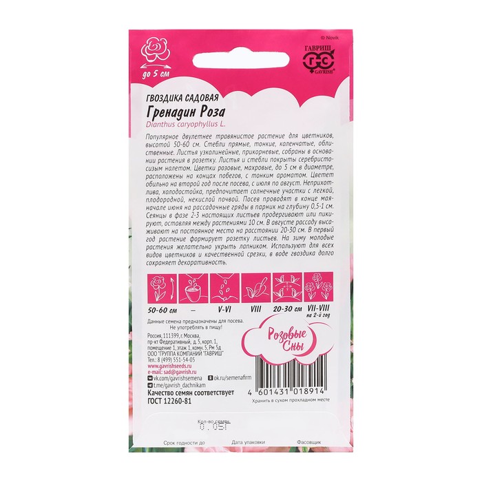 Популярное двулетнее травянистое растение для любительских цветников, формирует хорошо развитые кустики 50-60 см высотой. Стебли прямые, тонкие, коленчатые, облиственные. Листья узколинейные, прикорневые собраны в основании куста в розетку. Листья и стебли покрыты серебристо-сизым налетом. Цветки розовые, махровые, до 5 см в диаметре, расположены на концах побегов, с тонким ароматом. Цветет обильно на второй год после посева с июля по август.