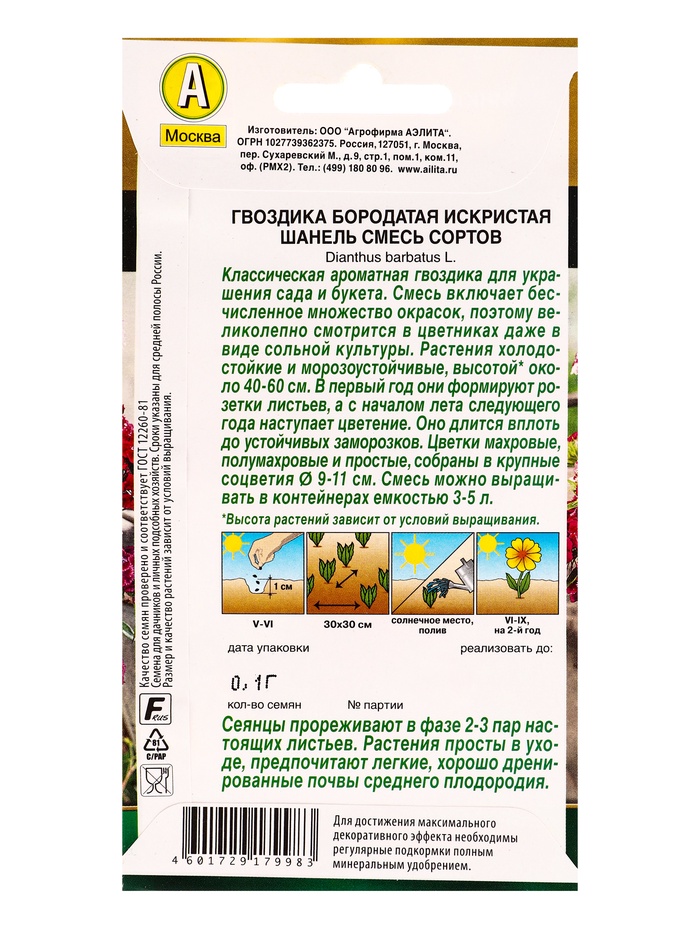 Семена цветов Гвоздика Искристая Шанель, смесь сортов Дв Золотая серия, Ц/П,0,1 г — Характеристики